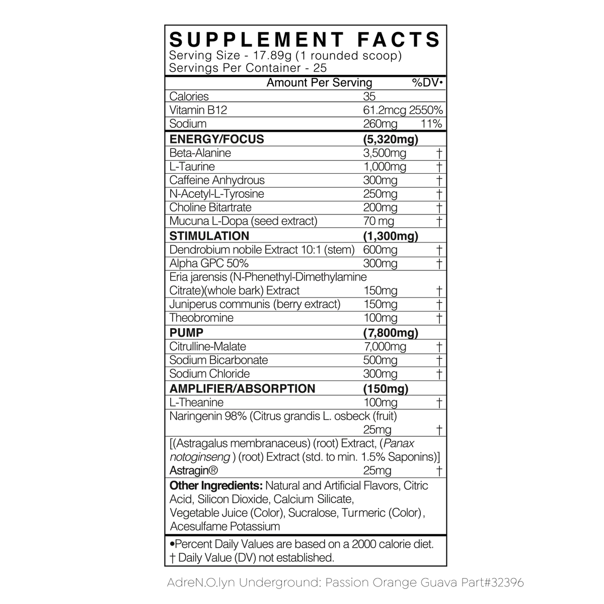 Black Market Labs AdreNOlyn Underground was formulated to support improved energy and endurance in the gym, increased power and muscle pumps during resistance training and a powerful mood boost and increased motivation from the Nootropic Stimulation Blend.