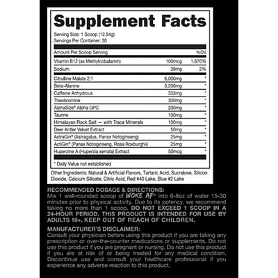 Woke AF is our highest stimulant pre-workout. It’s for the insane, the insatiable, and those who refuse to accept anything less than reaching energy levels over 9,000. It’s formulated with clinically studied ingredients (at their clinical doses) to help deliver pump, endurance, focus, and performance.* But that’s just the quality you expect from any Bucked Up product. What’s truly astonishing about Woke AF is the combination of stimulants.